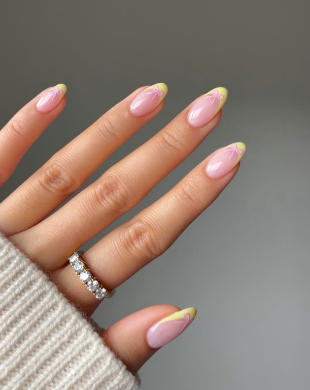 Pale yellow tips over a neutral base feel bright and optimistic for March. The design stays clean, so the color doesn’t overpower. Cheerful but still refined.